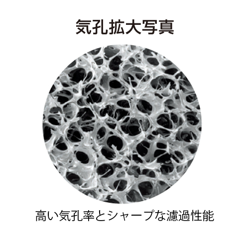 繊維素材にはない立体網目構造を成し、シャープな濾過制度を発揮します。