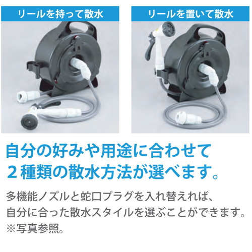 用途に合わせてノズルとプラグを付け替えることで2種類の散水方法が選べます。