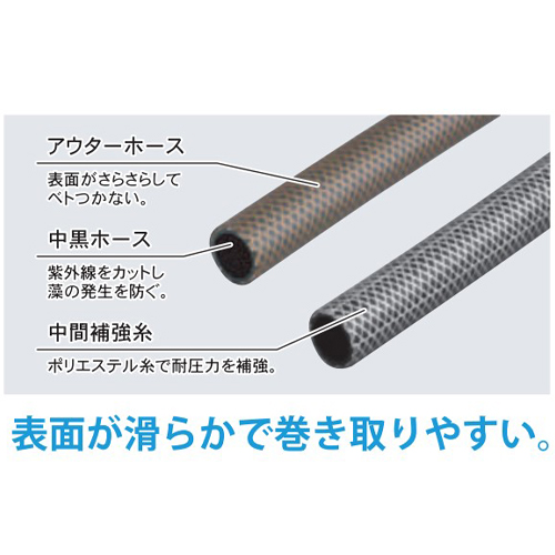 摩擦抵抗軽減処理により、ホースのはりつきを解消します。