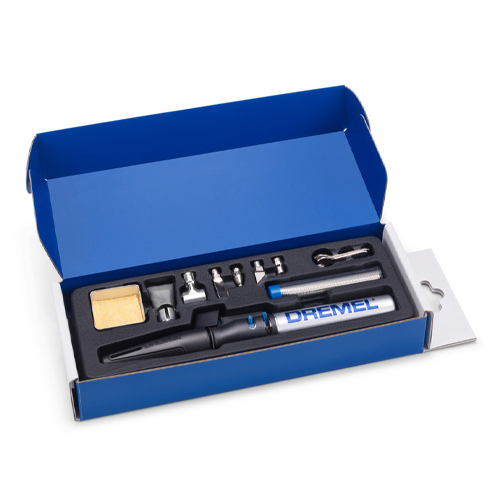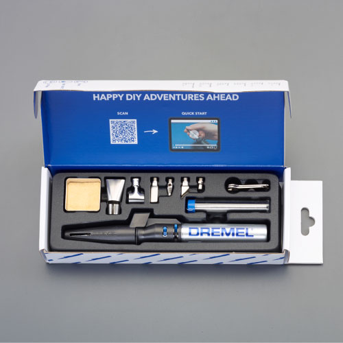| 用途 | はんだ付け、ナイロンテープの切断 プラスチックや熱加工材の溶解・成型 直火作業、プラスチックシートや熱加工材の切断 熱加工材の収縮、塗料除去の準備 電線に使用する感熱絶縁材の収縮 | <セット内容> | 本体、はんだ付け先端工具、デフレクター、切断ナイフ、熱風用切断工具、形削りナイフ、広角炎用ヘッド、焼き絵用ビット、はんだ用スポンジ、はんだ、レンチ2種(7mm・8mm) |