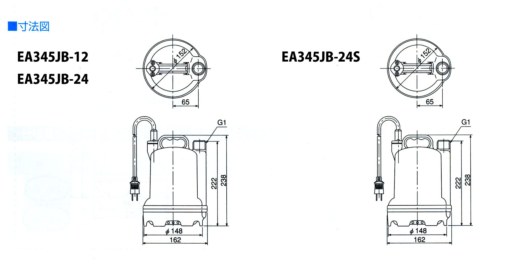 | 最大全揚程 | 6m | 吐出量 | 65L/分 |