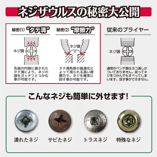 ※注意※ねじの頭を掴んで外す工具です。ねじ部には使用しないで下さい。縦溝が破損する原因になります。