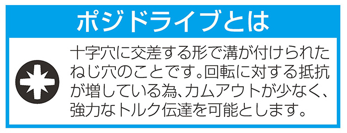 グリップの端(お尻の部分)に、ドライバーの先端形状とサイズを表示 ねじの形状・サイズを素早く識別可能です。 |