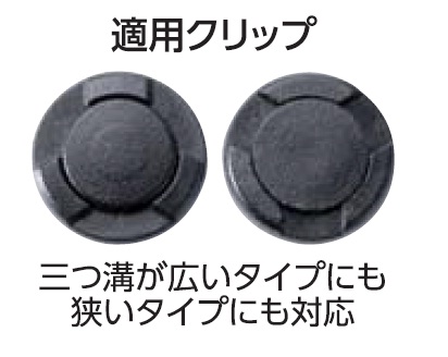厚み(T)9mm適用三つ溝タイプロックピン引抜きタイプ樹脂製クリップ(クリップ装着の場合:軸径φ5~10mm)