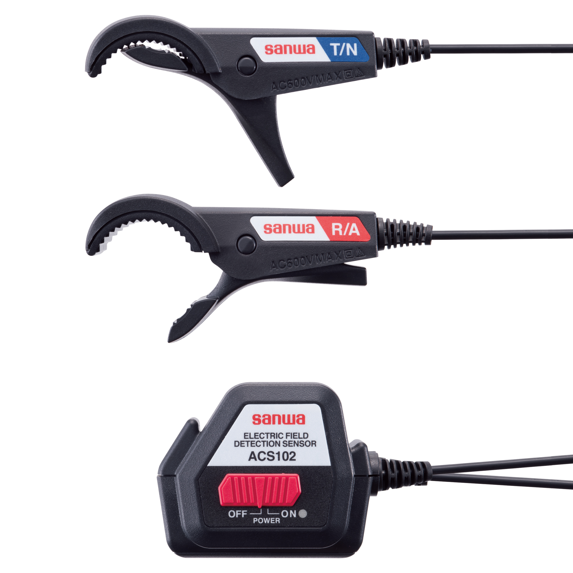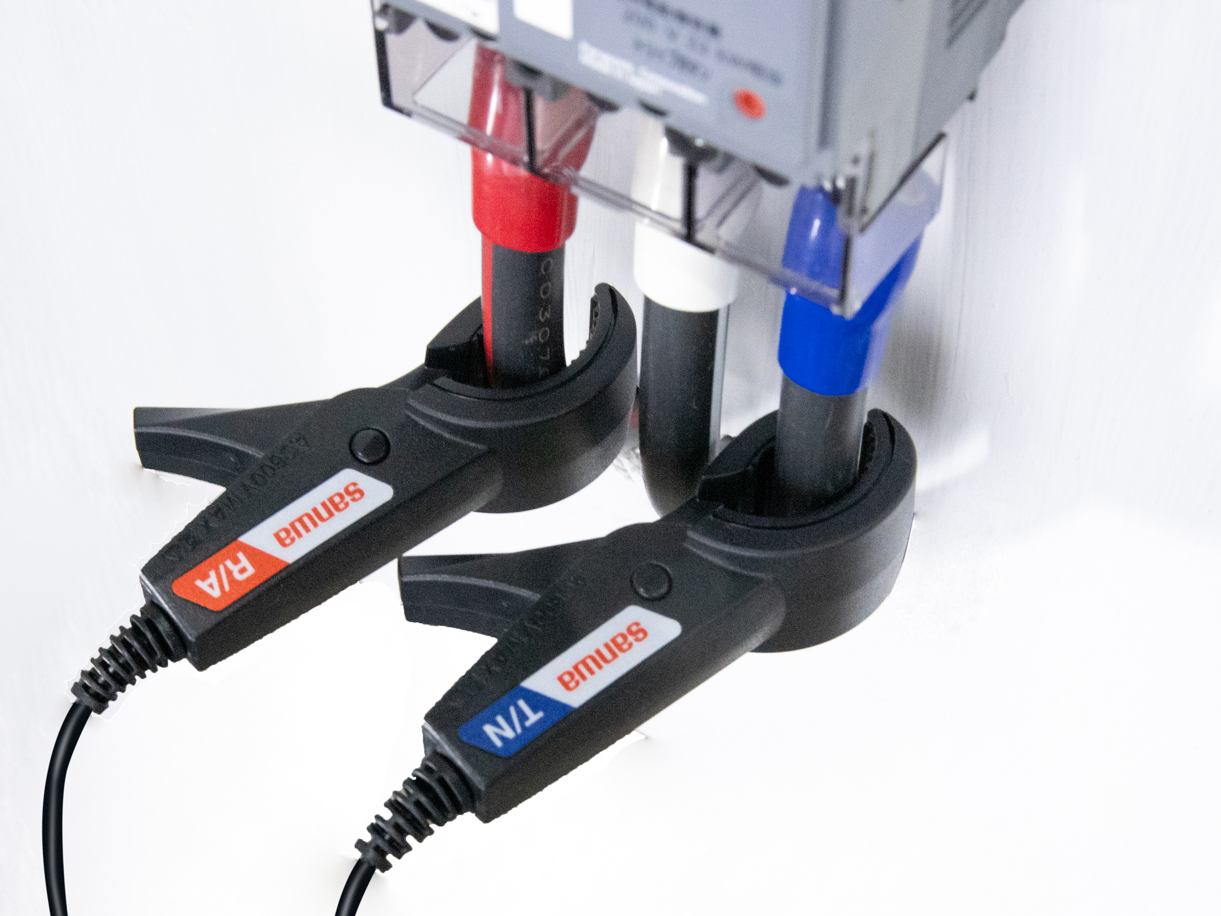 被覆線上に非接触式でクリップし、電路の位相を検出して安全に測定可能