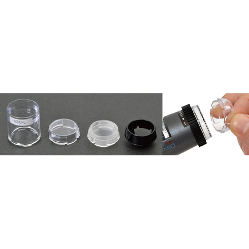 | 着脱や交換が可能な先端部アタッチメント。アタッチメントを取り外した状態では全ての拡大率範囲にアクセスでき、アングルの自由度も高まります。 |