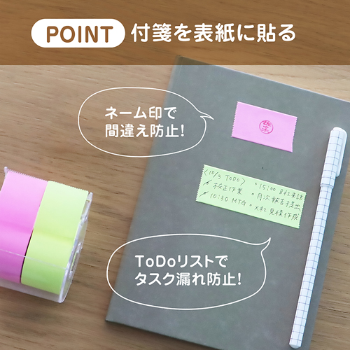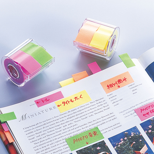 鮮やかな蛍光カラーのロール粘着メモの紙タイプです。