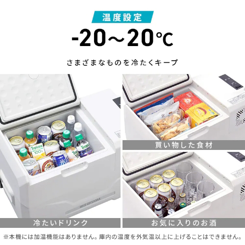 -20~20℃の温度設定ができるポータブル冷蔵冷凍庫です。