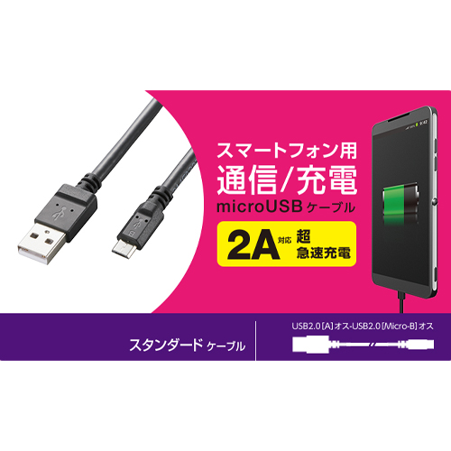 • 対応スマートフォンで充電やデータ通信が出来るmicroUSBケーブル