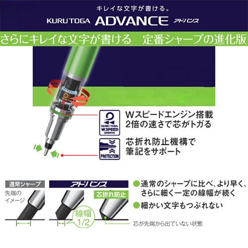 | ダブルスピードクルトガエンジン搭載で2倍の速さで芯がトガります。 |