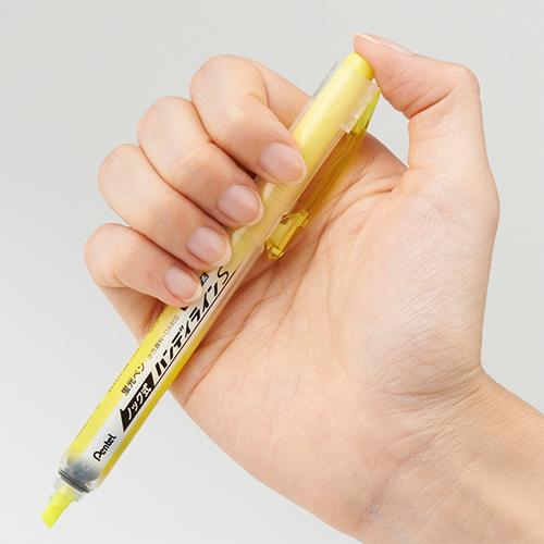 | ペン先の出し入れはボールペンのようにノックするだけ。 |