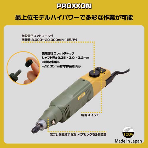 | ブランド名 | プロクソン(PROXXON) | 用途 | 金属の磨き、金型修正、一般彫刻、模型工作 |