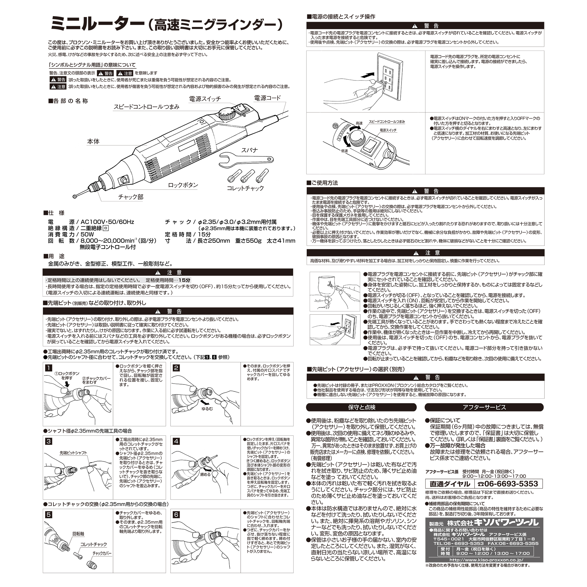 | コレットチャック | φ2.35mm、φ3.0mm、φ3.2mm | 定格使用時間 | 15分 |