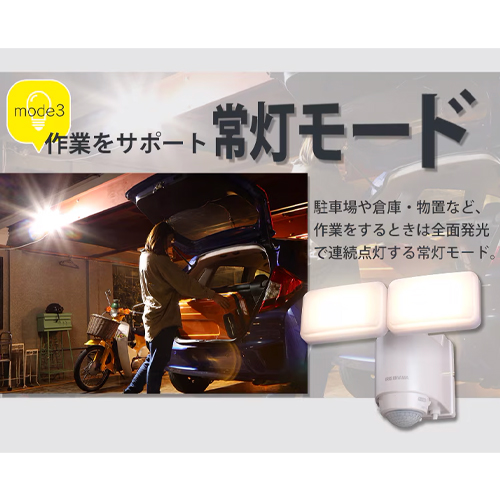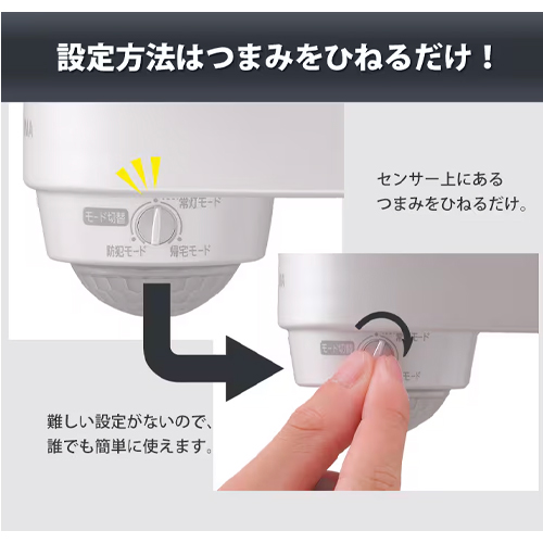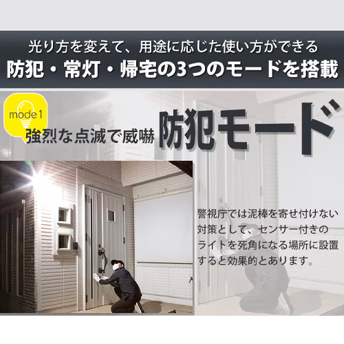 用途に合わせて、「防犯モード」「帰宅モード」「常灯モード」を選べます。