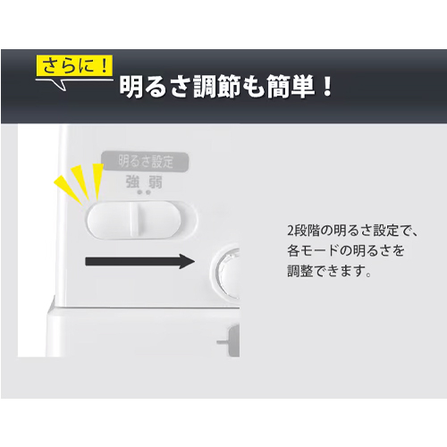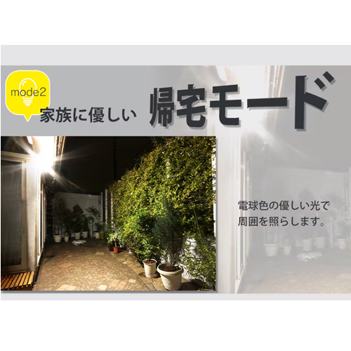 明るさ切替強/弱(強の約半分の明るさ) 点灯モード切替 防犯モード/常灯モード/帰宅モード