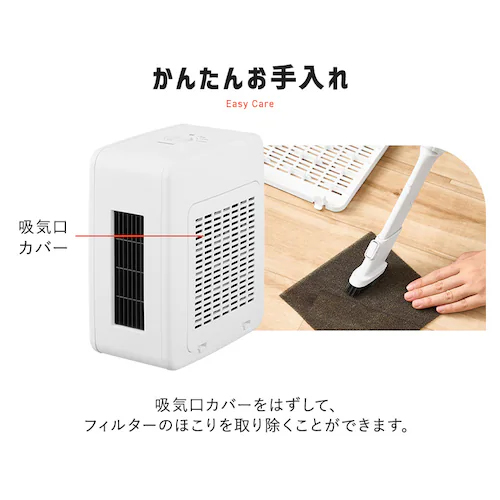 吸気口カバーをはずしてフィルターのほこりを取り除くことができ、簡単お手入れ。