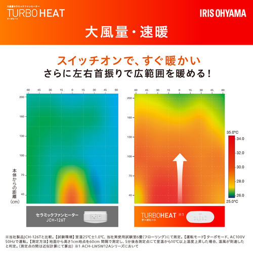 | より広範囲をあたためられる左右首ふりの大風量セラミックファンヒーターです。 |