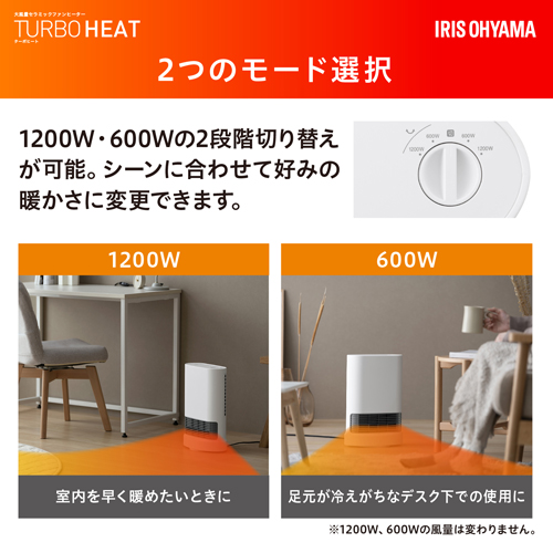 | 調整風量数 | 2段階(1200W・600W) | 安全装置 | 温度ヒューズ、電流ヒューズ、バイメタル、転倒スイッチ |