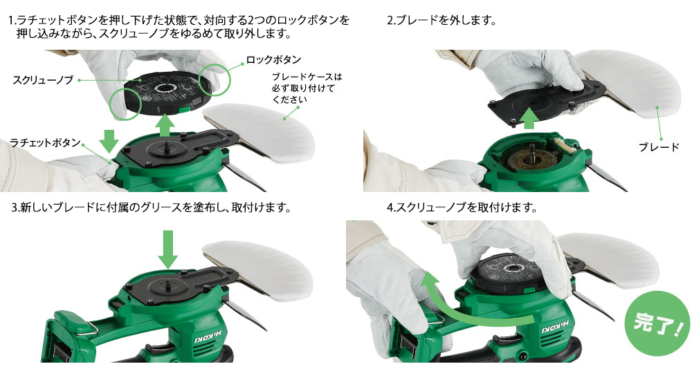 • ツールレスでブレードを交換できるため、作業に合わせて簡単にブレードが交換できます。