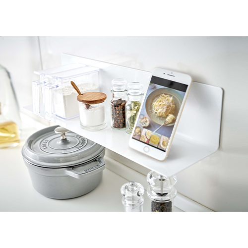 | 使用頻度の高い調味料などを、まとめてスッキリ壁面収納できます。 |