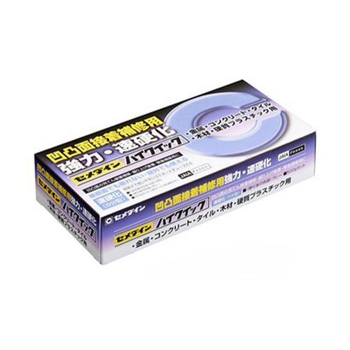 | 商品名 | ハイクイック | 用途 | 凸凹面の充てん接着、各種タイルの剥がれ補修、ノンスリップの剥がれ補修、ポストや表札の接着など |