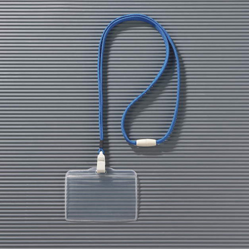 • ※ストラップは青色です。\nストラップ先端の環状クリップは、名札が不意に脱落するのを防止しますので安心してご使用いただけます。