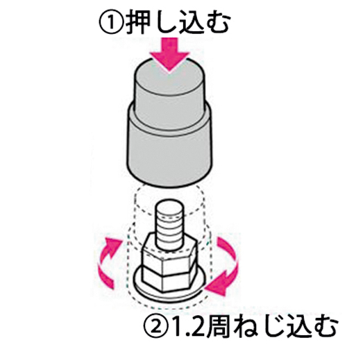 (平座金付ダブルナットを完全収納でき、雨が直接あたりません。)