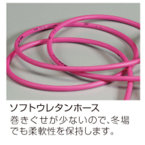| ホースは巻きグセが少なく冬場でも柔軟性を保持するソフトウレタンホース | |||