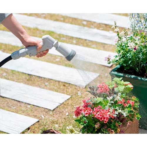 | POINT.1:使いやすく丈夫!多機能アクアガン搭載 レバーの握り方で簡単に水量を変えられる。 6つの水流(キリ/カクサン/ジェット/シャワー/ジョーロ/ストップ)に切り替え可能。 手元のダイヤルでカンタン切り替え。 ガーデニングはもちろん、洗車や掃除に適した水流が選べます。 またグリップをロックすると水を出し続けられるので、長時間の散水でも手が疲れにくい。 |
