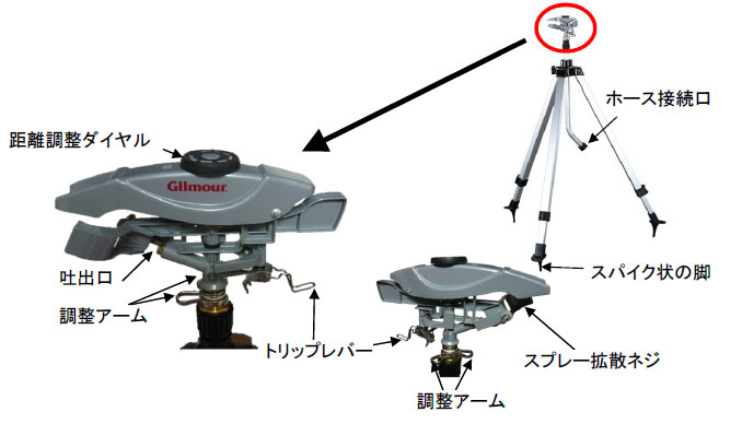 | 散水範囲 | 最大約790㎡(半径約16m) | 接続ねじ | 3/4”NHメス |