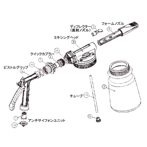| スプレーパターン | 3種(直噴・フォーム・拡散) ※差込式ノズルを交換してパターン変更 |