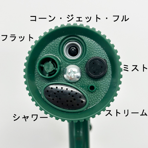 | スプレーパターン | 7種(コーン、ストリーム、フル、シャワー、ジェット、フラット、ミスト) ※ヘッドを回すことでパターンを変更 |