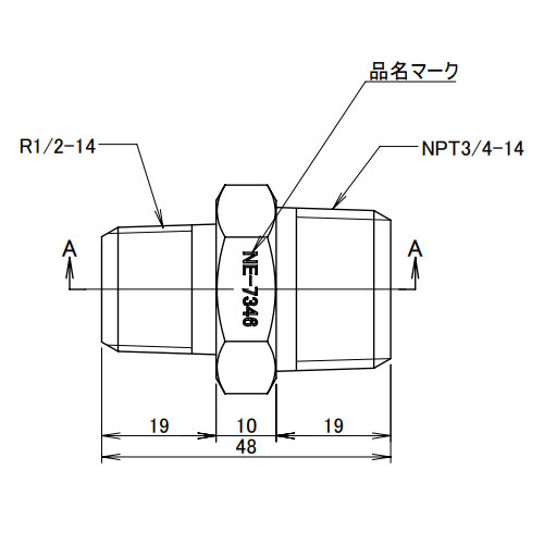 品名 : R1/2"xNPT3/4" 異径六角ニップル(ステンレス製)