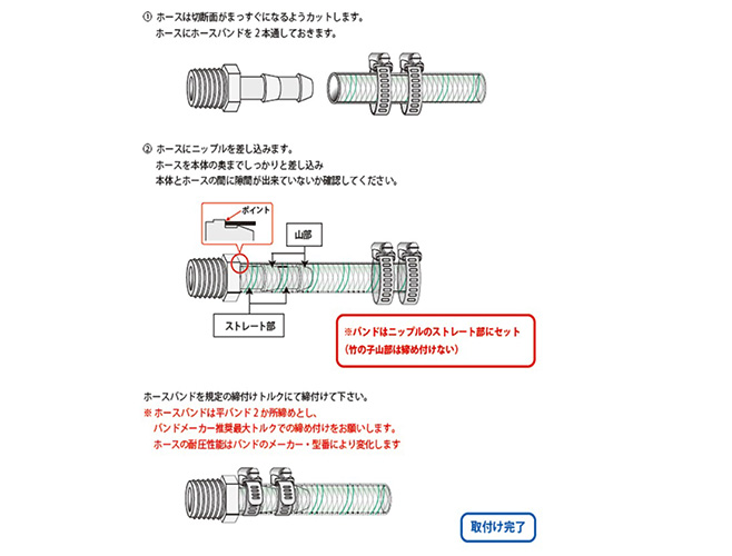| 二ップル部が長く、ホ-スバンド2本締めが可能 | |||