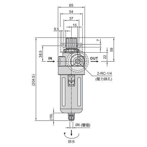 取付ねじ | Rc(PT)1/4” | エアー流量 | 1000L/min |