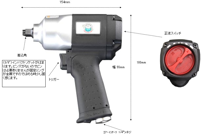 | 騒音値 | 102dB | 使用圧力 | 0.64MPa |