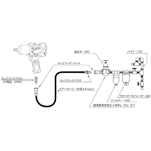 | 使用コンプレッサー | 3.75kW | 使用エアーホース | 9.5mm |