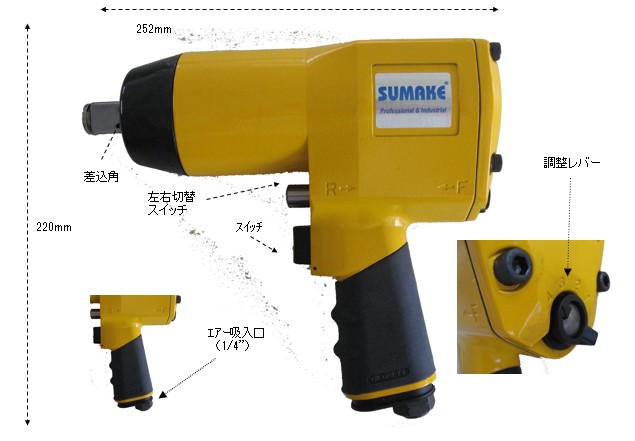 | 使用コンプレッサー | 5HP以上 | 能力(ボルト径) | 25mm |