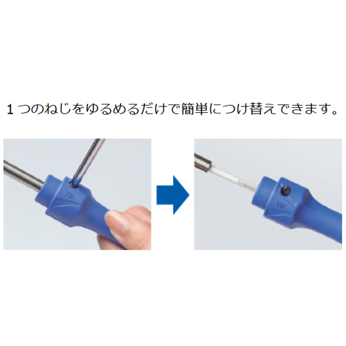 | 1つのねじをゆるめるだけでこて先の交換ができます。 | |||