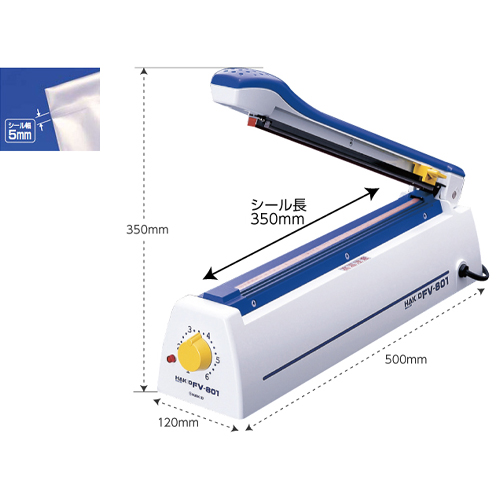 | シール寸法 | 5×350mm(最大) | シール能力 | 0.4mm(袋の厚み合計) |