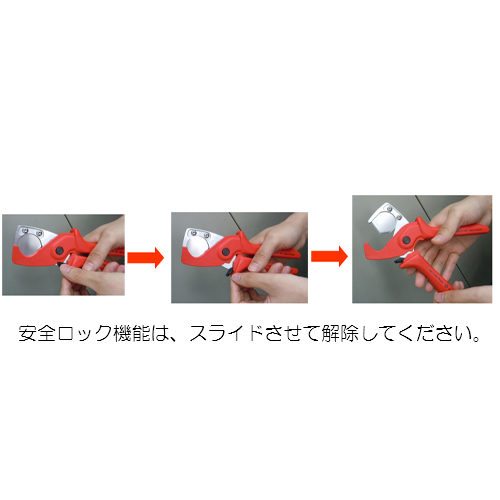 | 安全ロック機能付き 安全ロック機能は、スライドさせて解除してください。 |