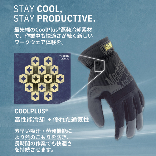 | CoolPlusの織りメッシュ手の甲部分が、作業中の熱の蓄積を減らします。 | |||