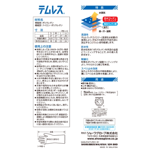 | 透湿性と防水性を兼ね備えた素材を採用。 汗などの湿気を手袋外部に放出することで、作業中のムレを軽減します。 |