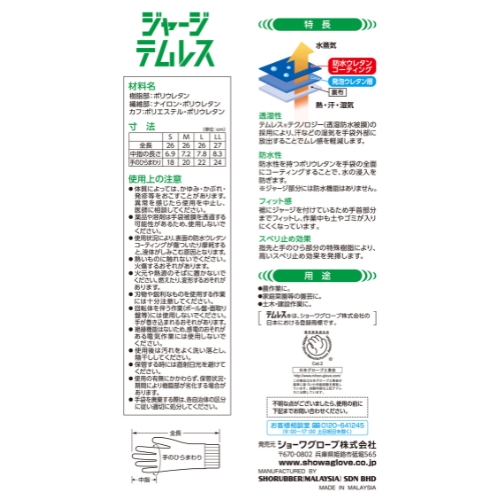 | 透湿性と防水性を兼ね備えた素材を採用。 汗などの湿気を手袋外部に放出することで、作業中のムレを軽減します。 |