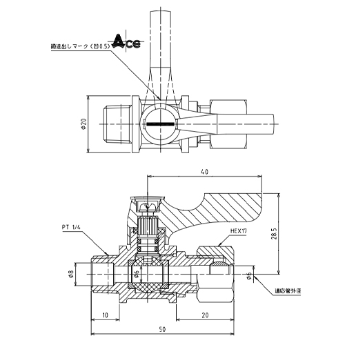 | 取付ねじ | R1/4” | 適用管外径 | 6mm |