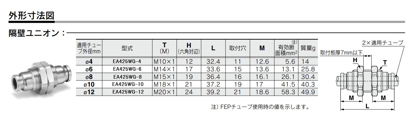| EA425WG-8 8mm ユニオン(隔壁/ステンレス製) |