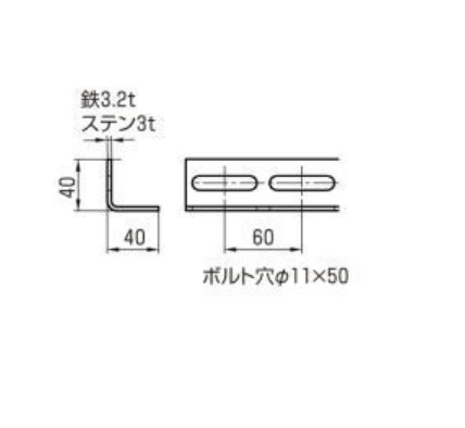 | 幅 | 40×40㎜ | ボルト穴 | 11×50(L)㎜ |