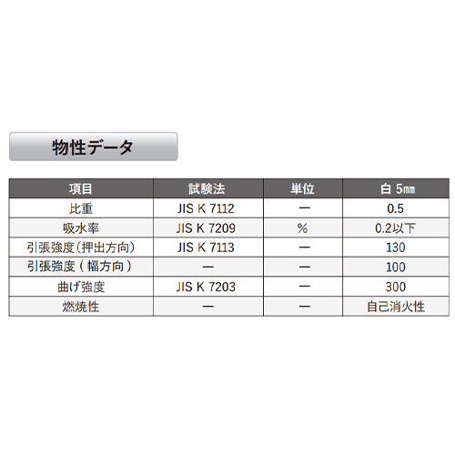 | 加工性・耐水性・耐薬品性・自己消火性に優れています。 | |||