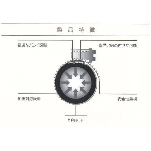 | ハウジングが組み込まれクランプ力を均等に配分、安全にバンドの誘導が可能。 | |||