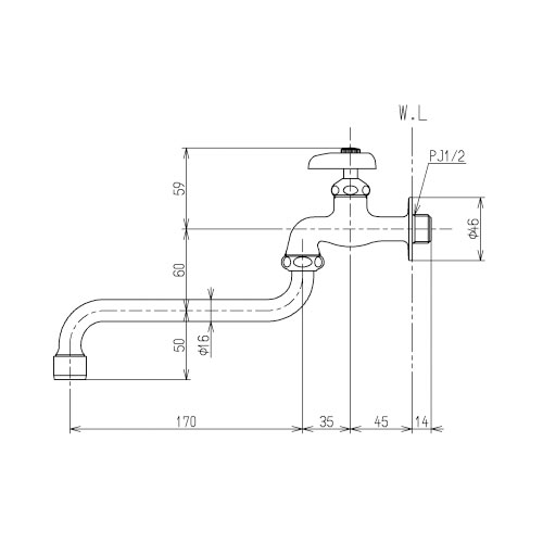 | パイプ長 | 170mm | 自在スパウトのねじ径 | 接続:W26山20 先端:W22山20 |